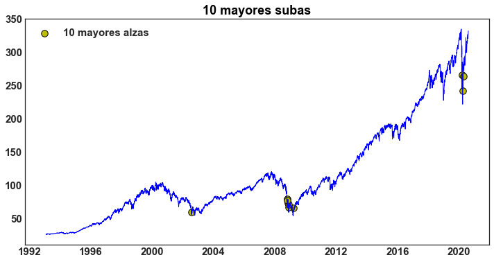 Del mismo modo, catorce días después del mínimo de la crisis Subprime se daría la quinta mayor suba del SPY.