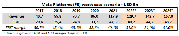 Narratives focus on social media’s impact on mental health and Meta becomes like “digital cigarettes”. Funny enough, even valuating Meta at EV/EBIT of Phillip Morris (14x) means a rise from the current multiple of 10,4x.